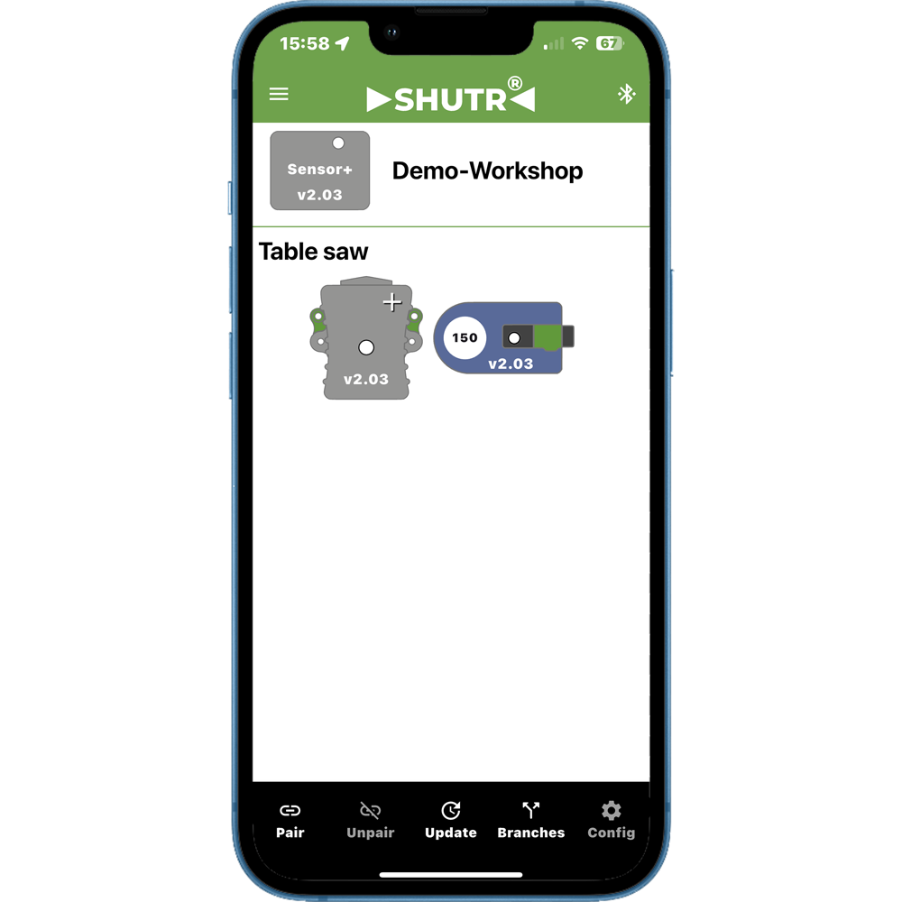 The Sensor+ option is activated by connecting the SHUTR Connect App via Bluetooth with a Sensor. If you want to control the Dust Collector you need a SHUTR Controller.